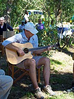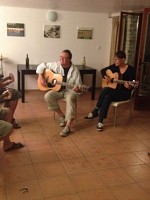 It's shaped like my old Taylor cutaway, and it's got a similar feel, but it plays easier and the tone is brighter. Friends remarked last night that it had "more of a presence" than the Taylor. (Don't get me wrong. I still love my Taylor, which has been a reliable workhorse guitar for almost fifteen years.)